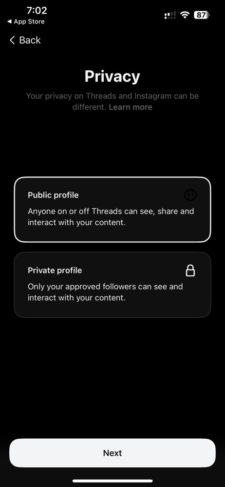 در این مرحله مشخص میکنید که حساب کاربری شما پابلیک باشد یا خصوصی