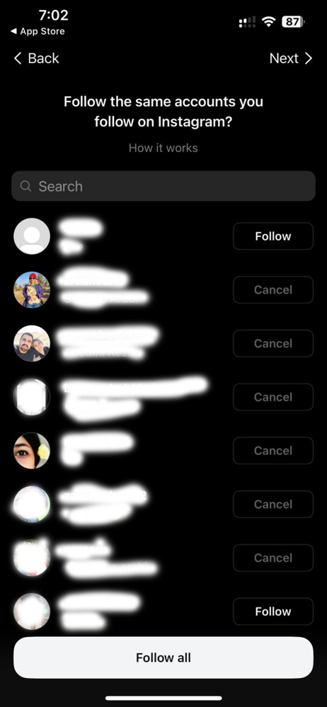 در این مرحله میتوانید دوستانی که در اینستاگرام فالو کردهاید را در تردز هم دنبال کنید.